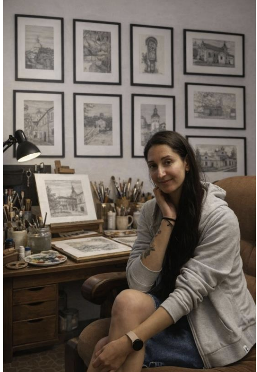 Pocházím z Ukrajiny, ale už šest let žiji a tvořím v Mikulově, jehož atmosféra mě inspiruje k výtvarné práci. Barevné uličky, zámek i bílé skály se staly hlavním motivem mých kreseb. K tvorbě jsem se po letech vrátila díky silné inspiraci a dnes pracuji především s inkoustem a akvarelem. Moje kresby vznikají pomalu a snaží se zachytit charakter a duši města. Výstava "Mikulov – Linky, ve kterých žije charakter" představuje osobní pohled na toto jedinečné místo. Má díla byla vystavena v galerii Efram v Mikulově a v synagoze v Břeclavi.