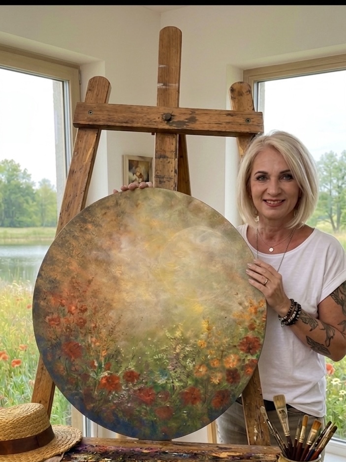 Jmenuji se Ladislava Martinková . Pracuji jako floristka a žiji v obci Vítězná Huntířov blízko Dvora Králové nad Labem . Mám ráda květiny , les, přírodu a tyto motivy přenáším i do svých obrazů . Mám ráda pestrost barev a v malování nacházím klid a relaxaci . Maluji převážně akrylem . Mé obrazy se objevují v několika soukromých sbírkách , přestože jsem s malováním začala před 5 lety .